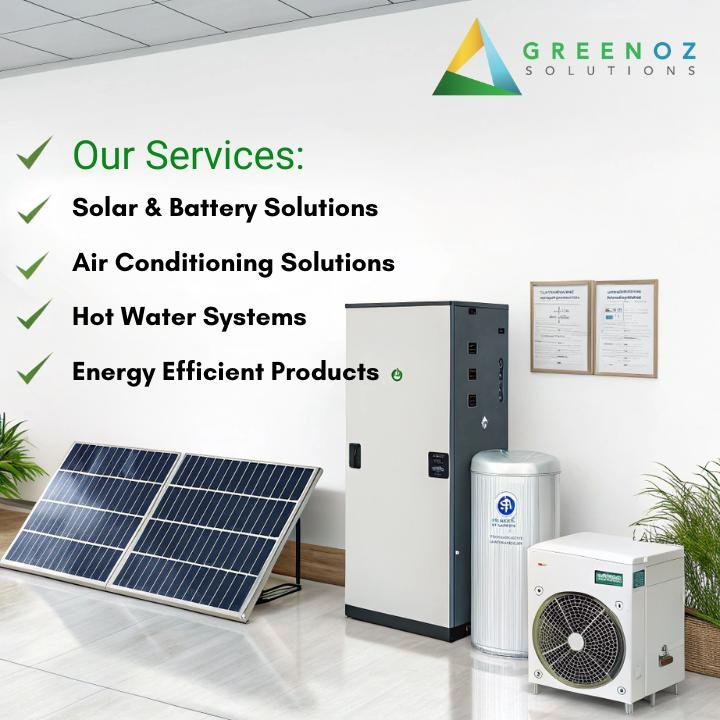 Greenoz Solutions provides complete energy-efficient solutions for homes and businesses across Victoria. We specialize in solar panel installations, energy-efficient hot water systems, reverse cycle air conditioning, and government rebate upgrades (VEU, Solar Victoria). Our expert team is committed to making your home more sustainable, comfortable, and affordable through smart energy upgrades. Based in Dandenong South, we proudly service the greater Melbourne region and the rest of Victoria.